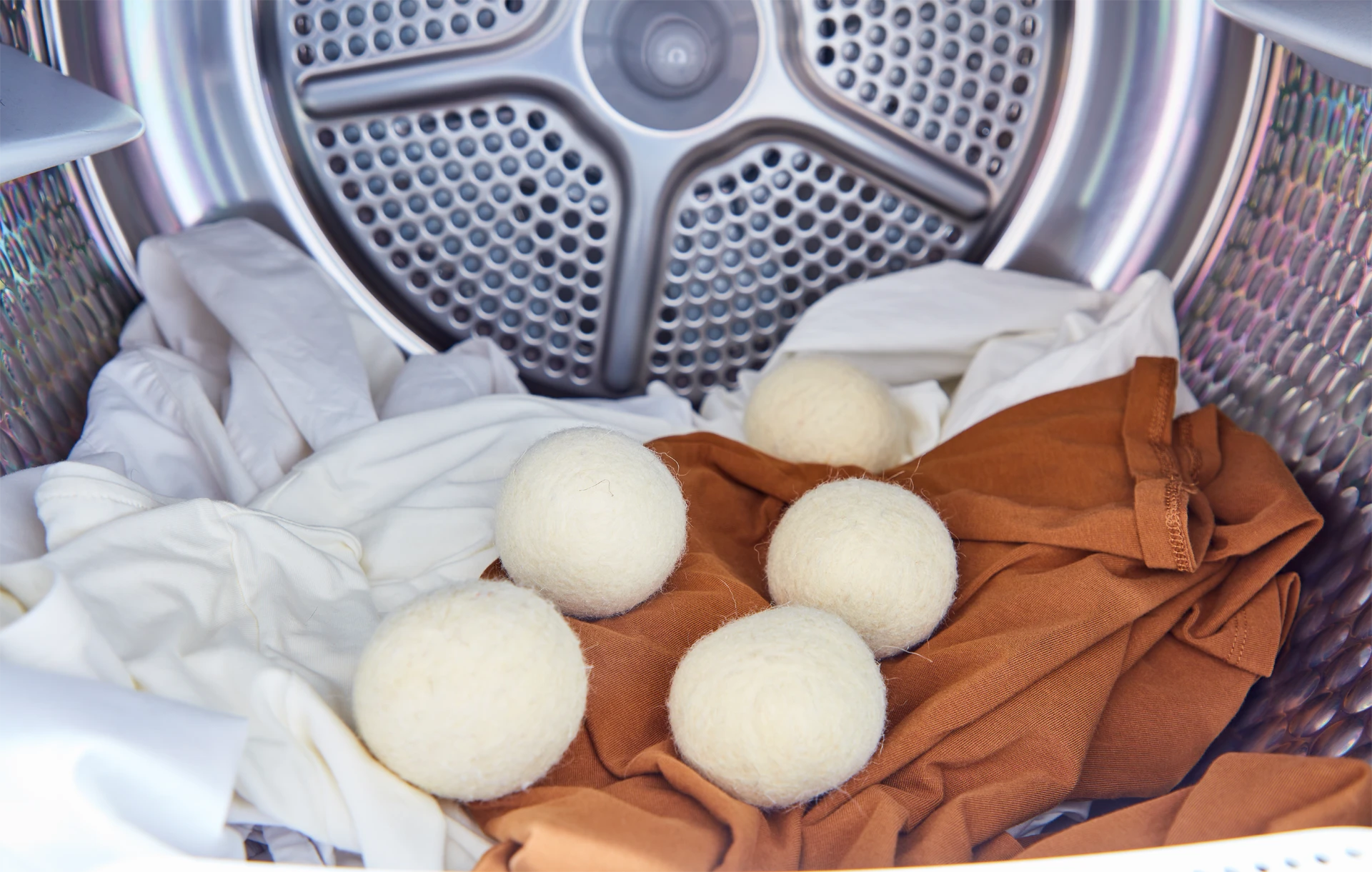 Geben Sie die Kugeln zusammen mit der nassen Wäsche in den Trockner. Sie sorgen dafür, dass sich die warme Luft besser verteilt und beschleunigen so den Trocknungsprozess – dies spart Energie. Zudem wird die Wäsche aufgelockert und so auf natürliche Weise schön weich, ist nicht so geknittert und weniger statisch.